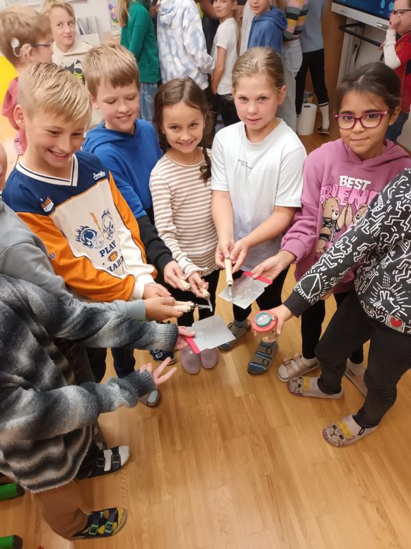 Wie ein Eichhörnchen bauten wir als Gruppe einen Kobel, aber natürlich am Boden. Da war Teamwork gefragt. Bereits zur Jausenzeit war er fertig und wir konnten es uns darin gemütlich machen. Wie ein Eichhörnchen mussten wir danach Vorräte verstecken und auch wieder finden. Das war gar nicht einfach.