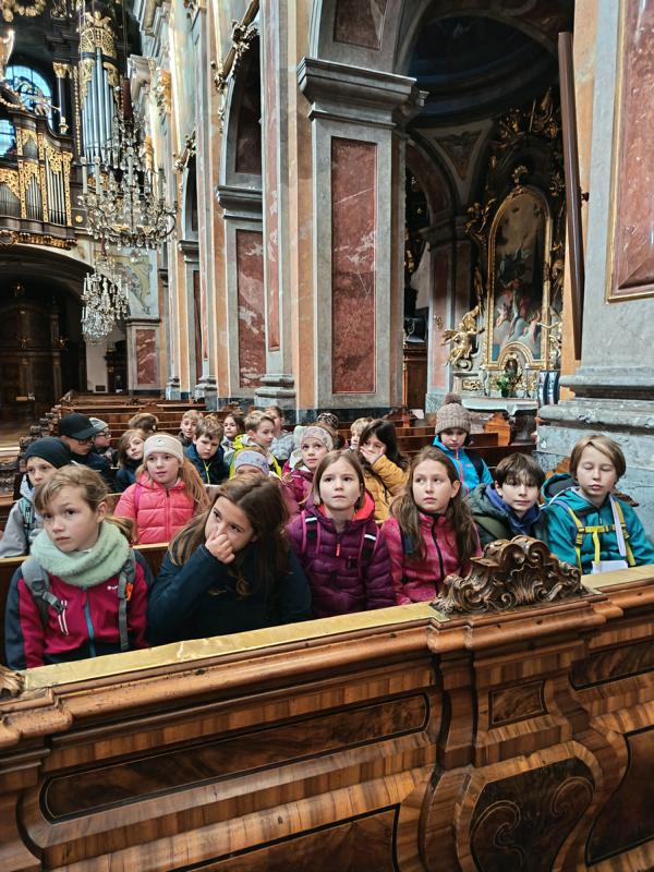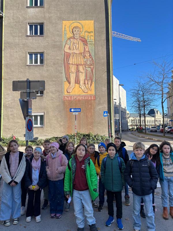 Nach einer eineinhalbstündigen Fahrt kamen wir, die 3a 3b und 4a in St. Pölten an. Schließlich gingen wir in die HTL und machten eine kurze Pause. Anschließend wurden wir in Gruppen aufgeteilt. Als Erstes sahen wir das Zwiebelmusterhaus mit 168 Tellern an der Wand. Ebenfalls betrachteten wir das Rathaus mit der großen Dreifaltigkeitssäule. Als nächstes gingen wir in die Domkirche. Dort erfuhren wir von einem unterirdischen Friedhof. Zunächst gingen wir zu dem Landhaus in dem wir den Verhandlungssaal sahen. Zu guter Letzt gingen wir zu dem zirka 77 m hohen Klangturm, auf dem wir auf 280 Stiegen hoch gingen.